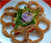 Now dip the onion rings in the batter and deep-fry them till the turn golden brown on both sides.